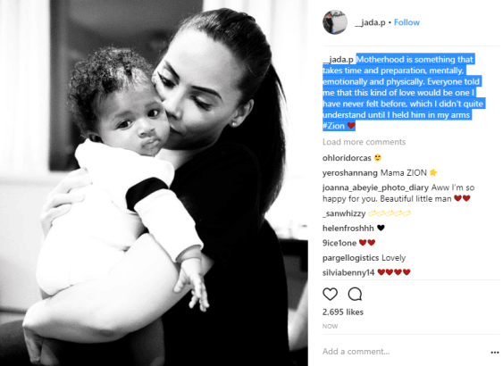 Jada Pollock who was Wizkid’s manager before they welcomed their son, shared new photos on Instagram and it came with a heartfelt caption of motherhood. She wrote;